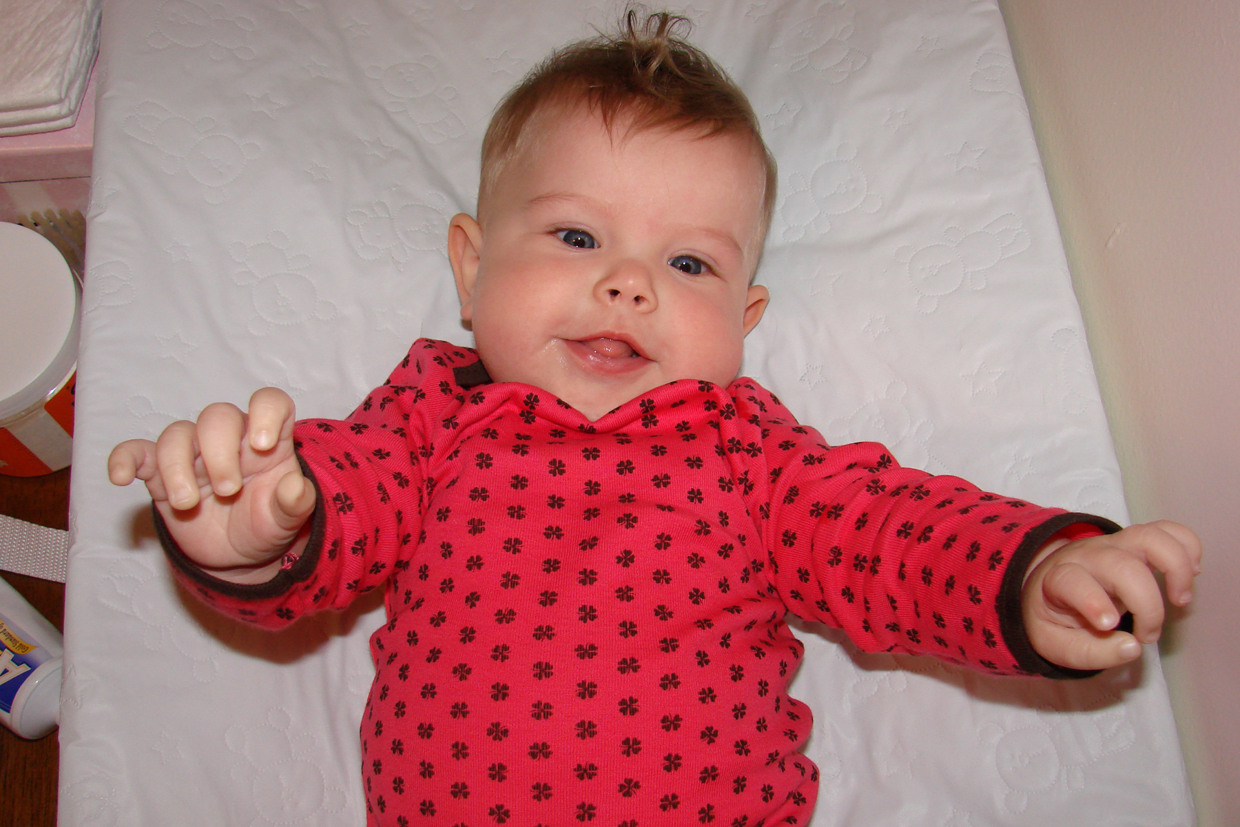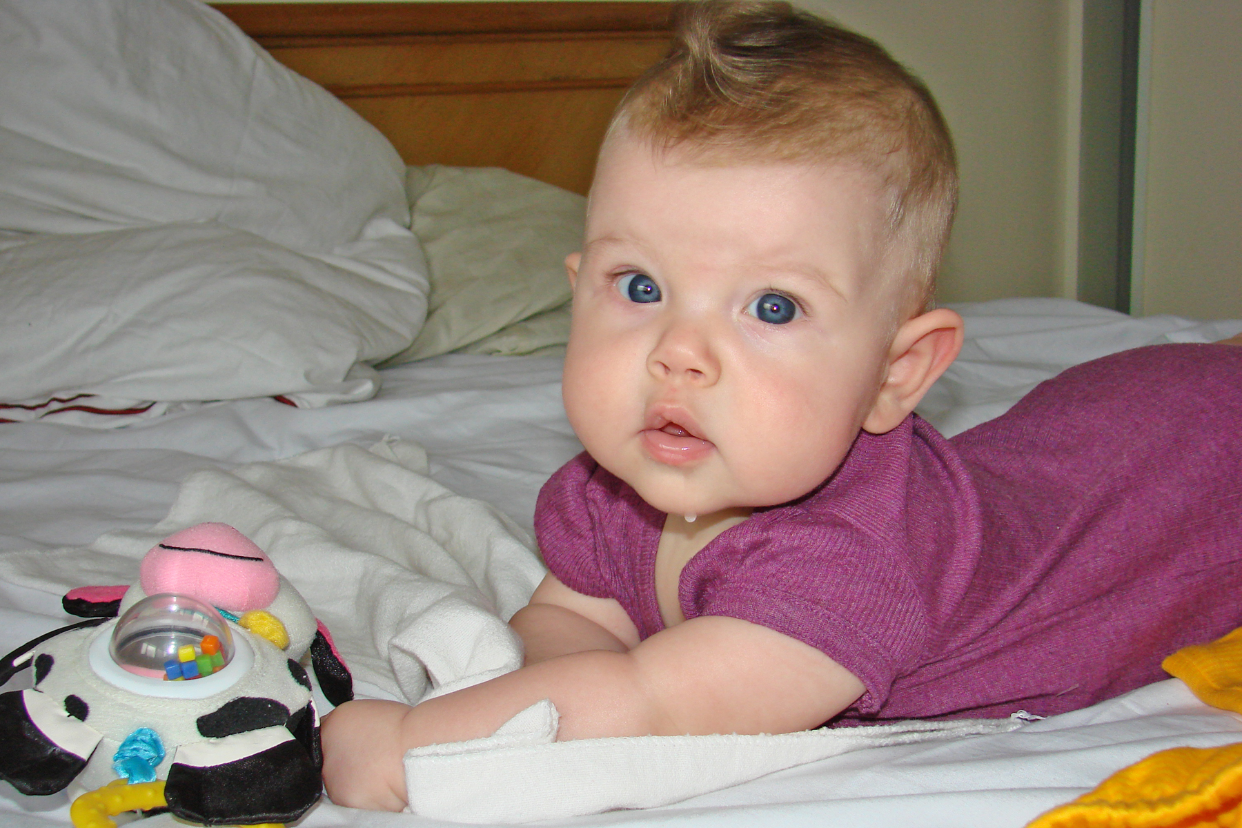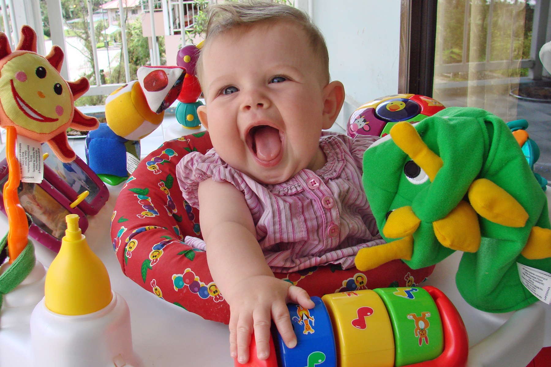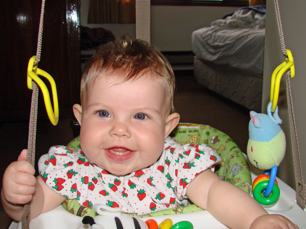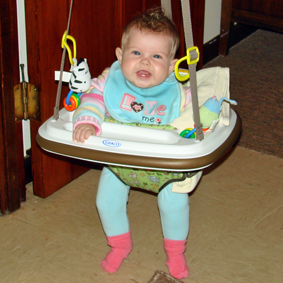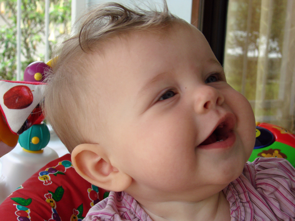 Diana had her 6 month immunizations this week and did pretty well. We have to go back again in two weeks for round two, but then not again for quite a while. She is on the petite size for her age (despite being so chubby), so she’s fitting into her 6 month clothes, but things labeled 6-9 months are a little bulky. Plus, we’re discovering that all of those “gender neutral” clothes do look a little masculine on her. That, coupled with the fact that all Indonesian girls have their ears pierced as babies, means that most folks we meet think she’s a boy (even if she’s wearing pink!). She doesn’t seem to mind though, and is happier in a pair of overalls than a dress anyway, so she’s already a little tomboy.