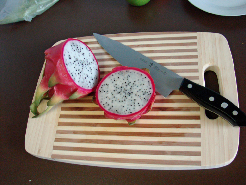 We went to Sunday brunch again this week, which was great. They had some wonderful smoked salmon, an Asian curried beef dish, and a “Small Vegetables with Tomato Sauce, Crepe and Over Baked With Cheese,” which was essentially a lasagna with crepe instead of pasta. Delicious! We were glad we sat outside since the indoor dining room was full of loud kids. Diana was a little tired, but just zoned out with her cow toy until we were ready to go. We continue to enjoy the quality and discovery of food here. We tried Dragon Fruit this week, which Ben had never seen but Emily had eaten in Thailand. It’s a very beautiful fruit, but tastes a little like a bland kiwi, so it is not as exciting to eat as it is to look at.