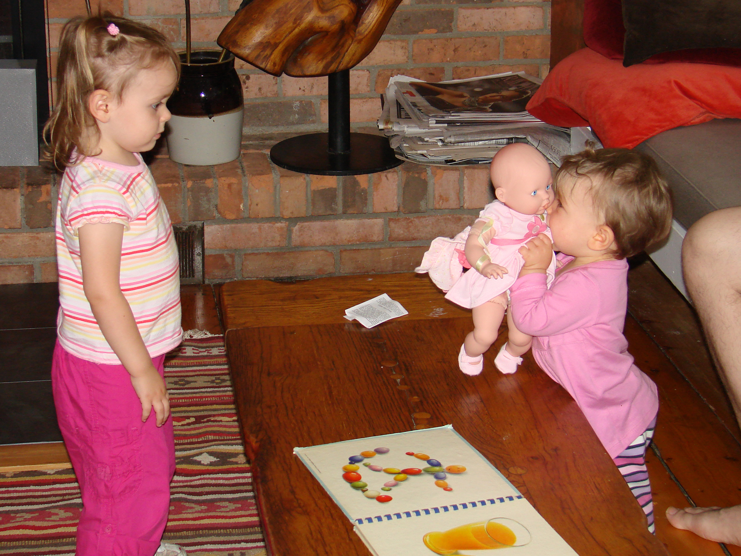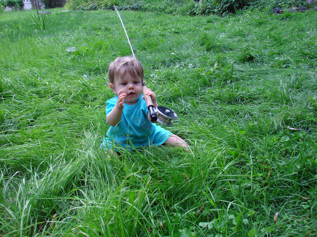 Diana has had a lot of “firsts” the last two weeks: first birthday, first cupcake, her first pancake and her first time to hold a fishing rod. (She didn’t catch anything in the yard in front of the house.) She also received her first doll as a birthday present and has loved playing with it. Although Madeline enjoyed changing the doll’s diaper, Diana enjoyed biting the doll’s head like an apple. Madeline was a lot of fun and Diana had a great time with her “big sister”. Madeline’s little brother Adam was unimpressed with the festivities and spent much of the visit napping.