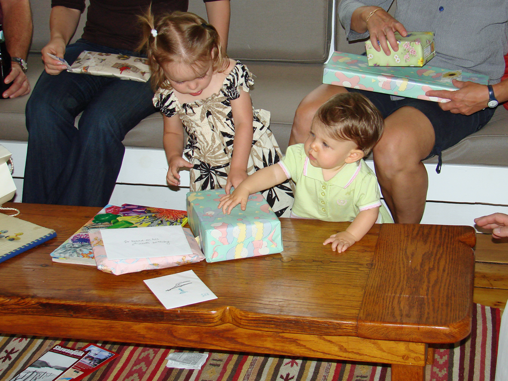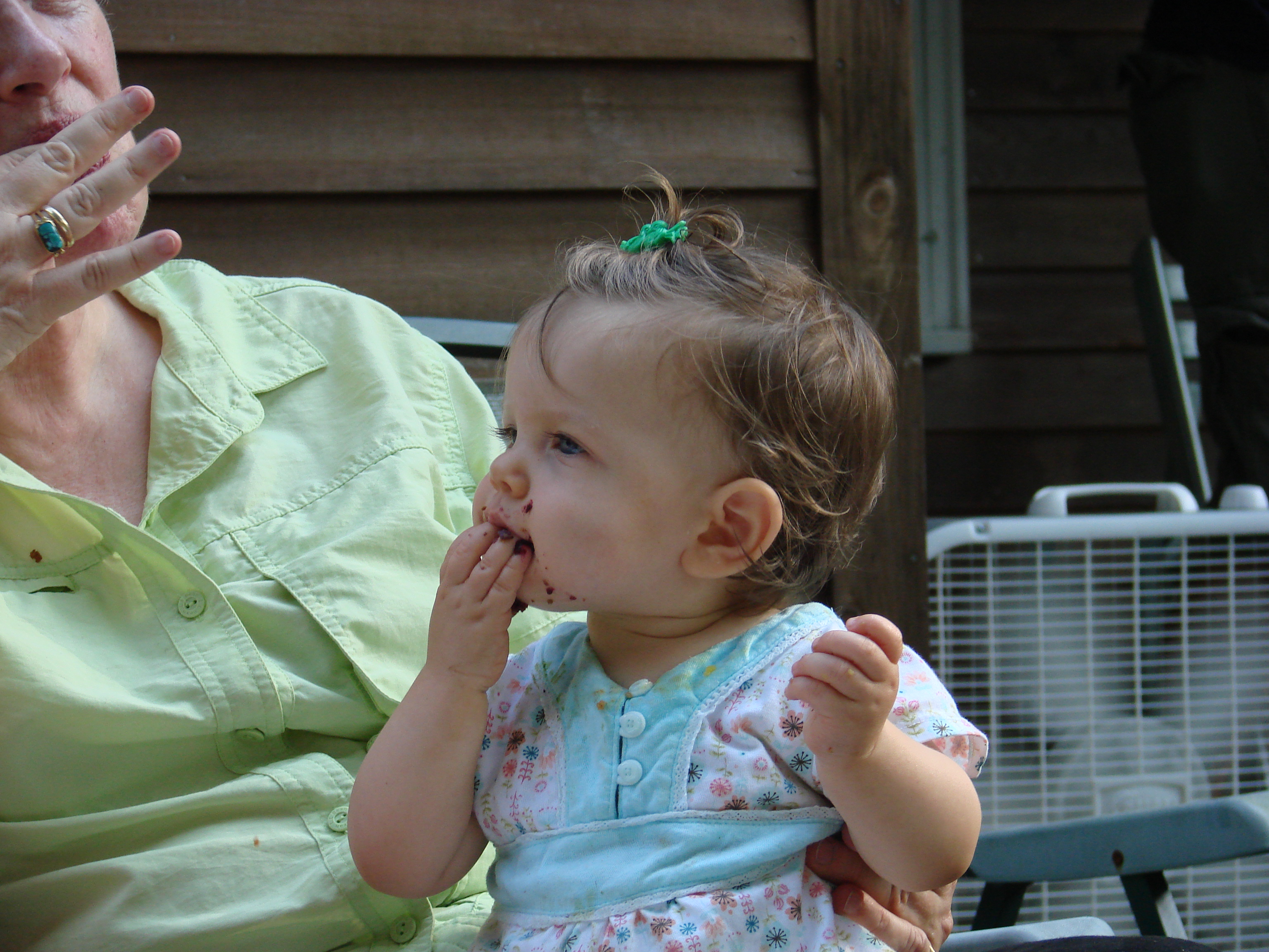 Diana had a great 1st birthday on August 8th. Madeline, who is two years old, helped Diana open her presents and nobody told Diana that she was actually only 11 months old. Her birthday will be on September 8th, but it was more fun to celebrate when everyone could be here. Diana had her first cupcake but we saved frosting as a treat for next year.