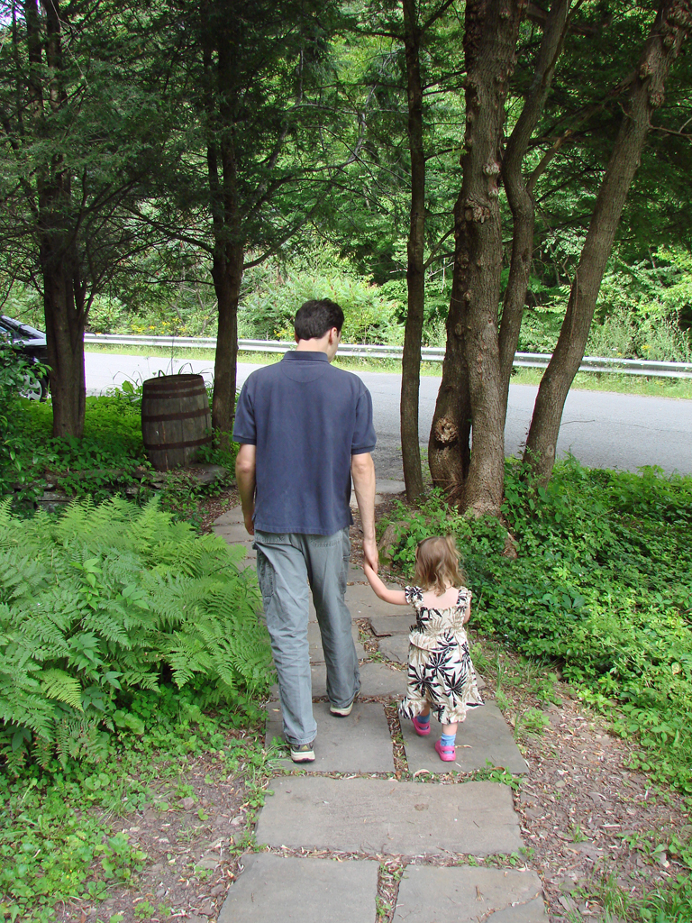 We have had a great vacation here in Woodstock, NY. All of Diana’s grandparents got to spend some time with her and we had great visits from other family and friends. We’ve had great weather which gave us a chance to remind Diana what the sun looks like. Woodstock is a fun town with shops and restaurants that cater to both a veggie /recycle /ride bikes crowd and a steak/real estate/drive Mercedes crowd. (Of course, none of the businesses manage to appeal to both crowds at the same time.)