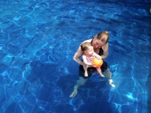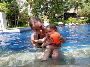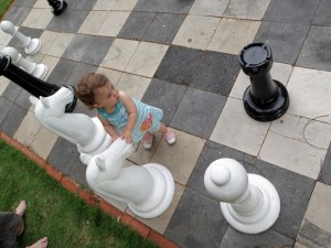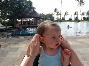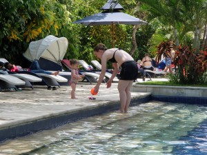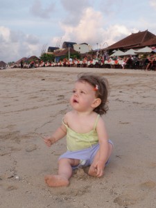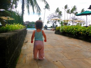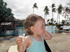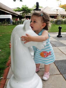 We had a wonderful vacation in Bali and Diana and are finally getting settled back into our routine here. Diana really enjoyed being able to swim and play in the sand nearly every day, and especially loved the oversized chess set that was right next to the resort restaurant. She gave the knights hugs on daily basis. She also made friends with a cement frog outside the lobby, so we had to stop for a visit every time we left the hotel.