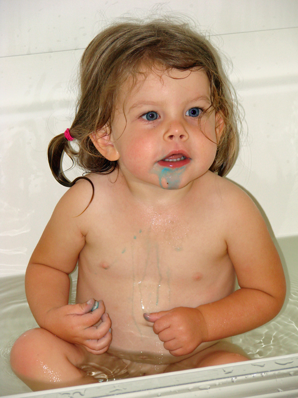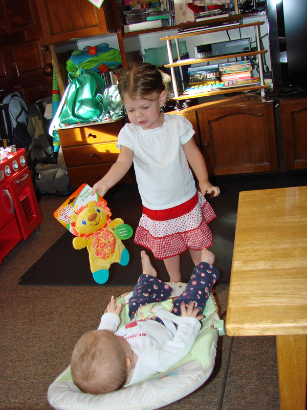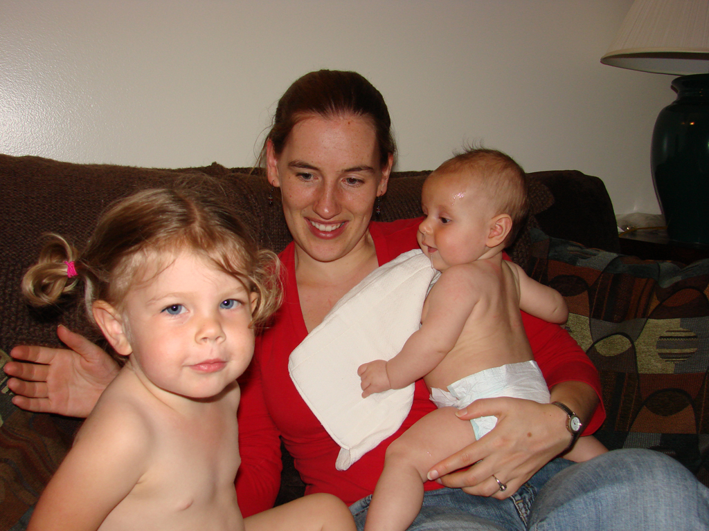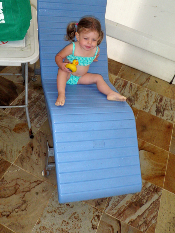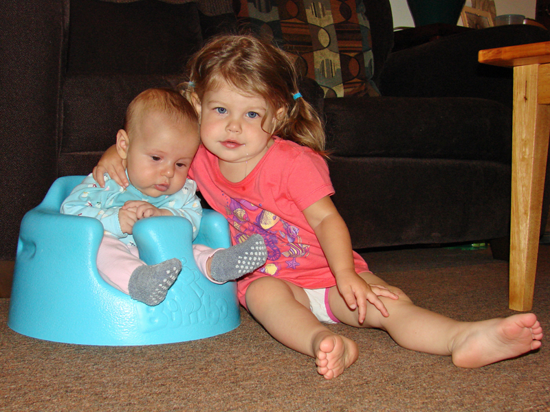 Here’s some more pics of our recent adventures. As you can see, Helen is growing and enjoying sitting up in her Bumbo, or her saucer. She loves watching Diana run around and dance, and judging by her laughter, seeing Diana cough was the funniest thing she’s seen yet. We went to the pool this weekend, and Diana was a fearless swimmer and didn’t want any help from daddy, although she put up with it when she realized what would happen if he let go. Diana has also discovered M&M’s, and got a blue one in the tub as a treat this week – she’s savors them, and that combined with the drool made for a pretty funny picture. Enjoy!